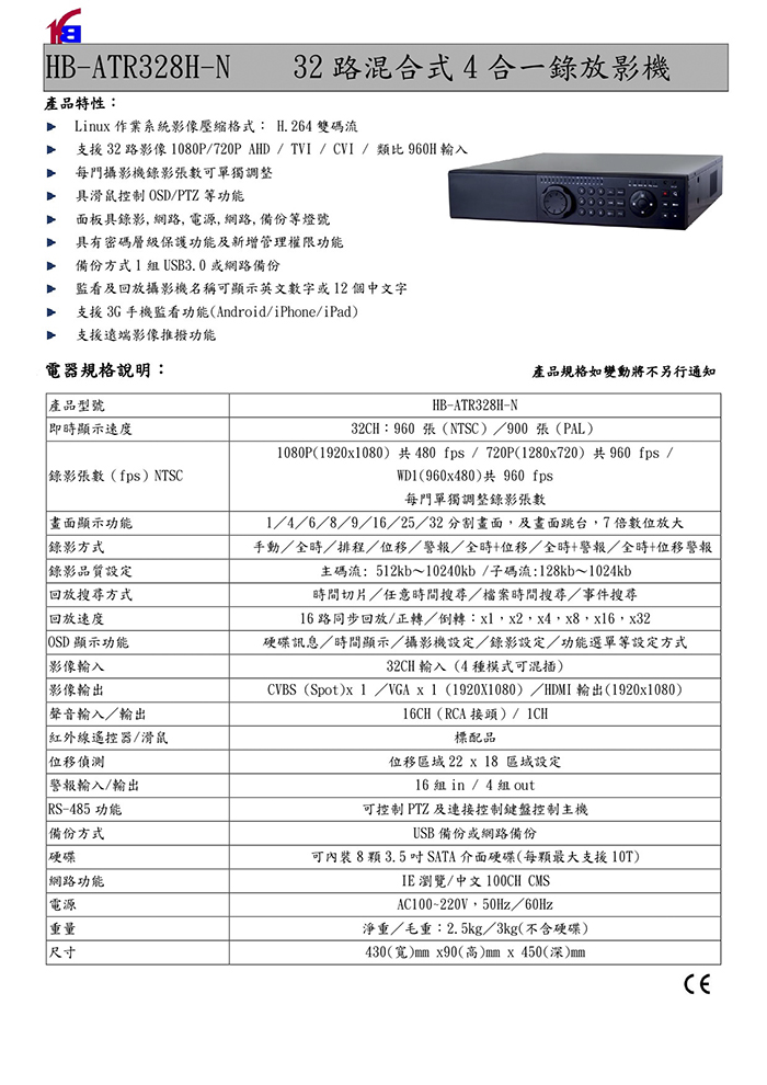 HB-ATR328H-N 32路混合式4合一錄放影機